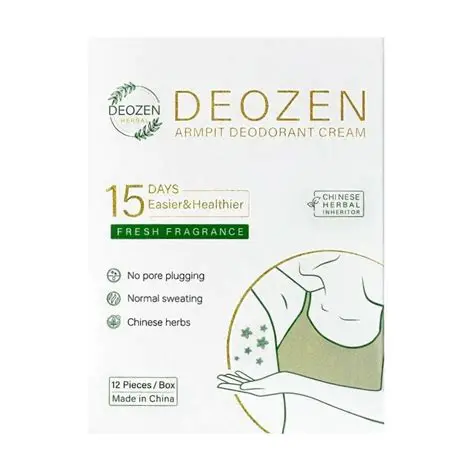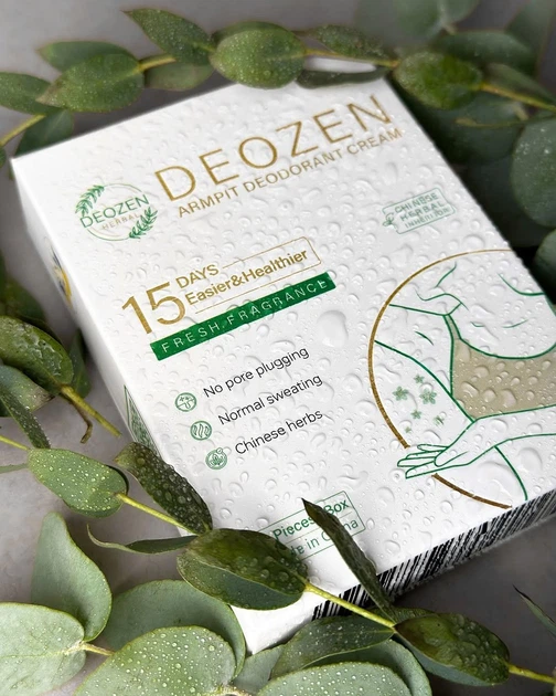 DEOZEN™ to naturalny, ziołowy krem-dezodorant oparty na recepturach tradycyjnej medycyny chińskiej. Działa wyjątkowo długo — aż do 15 dni po jednym zastosowaniu, skutecznie eliminując nieprzyjemny zapach bez blokowania procesu pocenia. Skóra pozostaje świeża, sucha i może swobodnie oddychać.