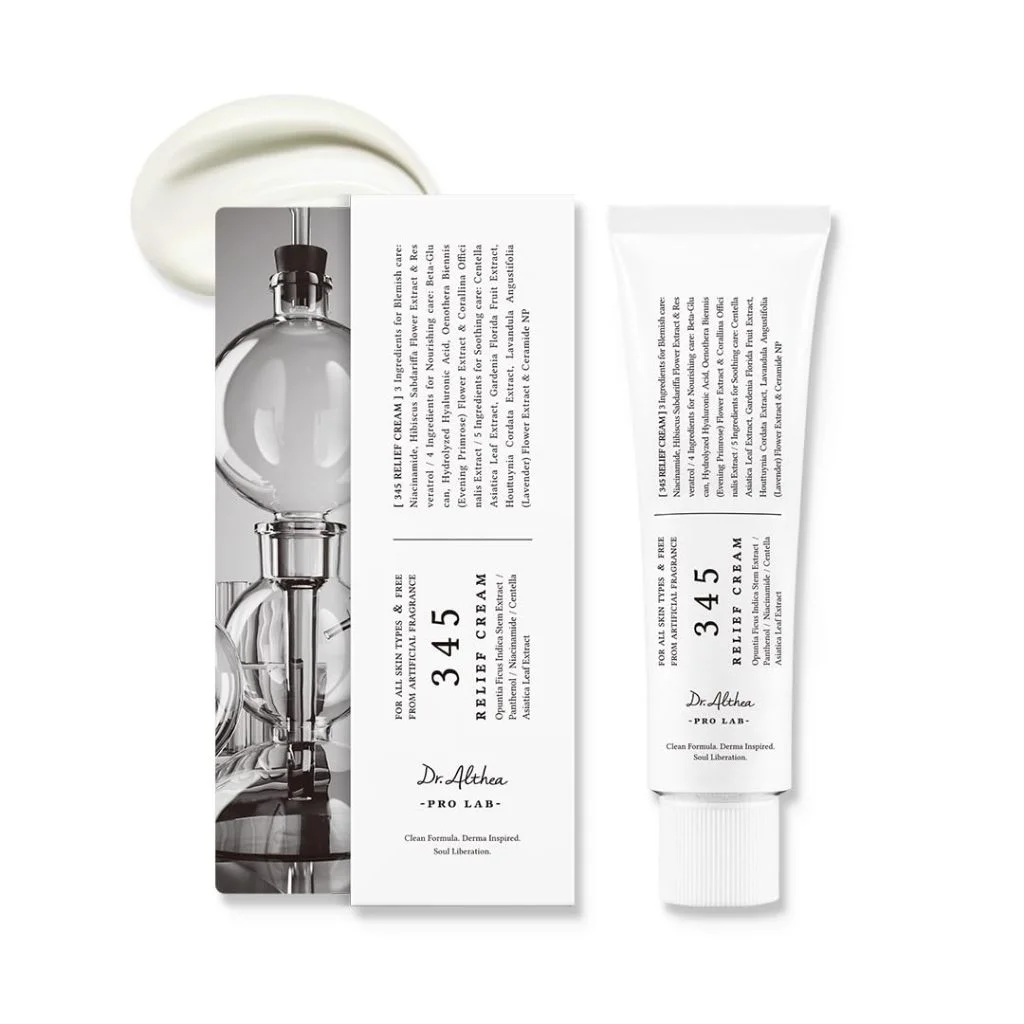 Dr. Althea 345 Relief Cream to specjalistyczny krem łagodzący, stworzony z myślą o skórze wrażliwej i podrażnionej. Jego formuła intensywnie koi zaczerwienienia, redukuje uczucie swędzenia i dyskomfortu, jednocześnie wspierając naturalną barierę ochronną skóry.